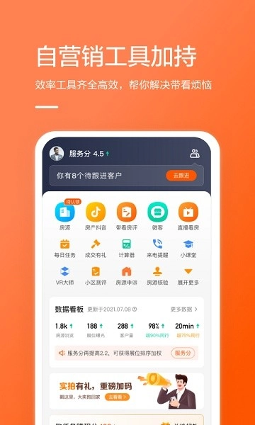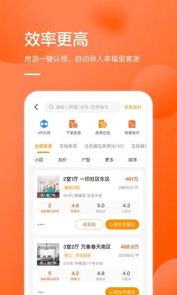 支持50张图片批量上传,自动生成VR看房链接;实时消息提醒功能确保3分钟内响应客户咨询;独创客户质量评分系统,根据互动频次自动划分优先级;每日推送周边3公里新上房源,抢占第一手客源。