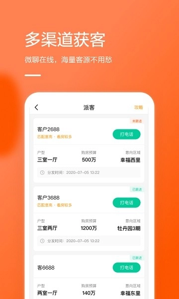 幸福客是一款为房产经纪人量身打造的高效办公软件,借助智能化手段行业获客瓶颈。它整合了客户分类管理、需求分析、房源推广等关键功能,助力经纪人快速锁定精准客户;其亮点在于可自动生成客户跟进记录,支持多平台分享房源信息,显著提高工作效率。系统界面操作直观,新手也能迅速掌握,每日都有海量真实客户资源更新,渴望提升业绩的朋友不妨前来体验!