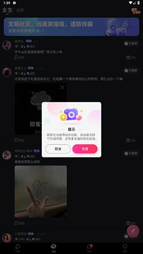 2、萌新无法使用动态功能,完成首冲即可开通权限。