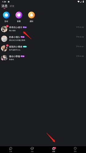 1、启动软件后,点击底部的“消息”选项,接着打开对应的对话框。
