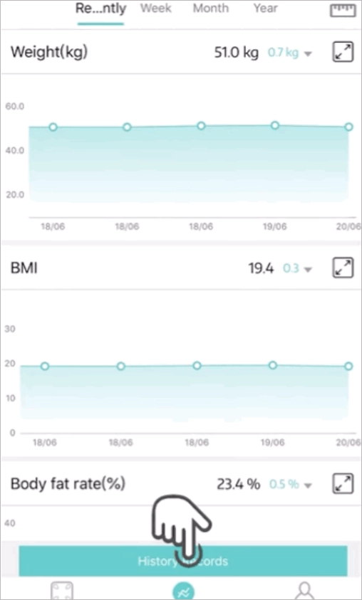 2、点击图表界面下方的【历史记录】,即可进入历史数据界面。