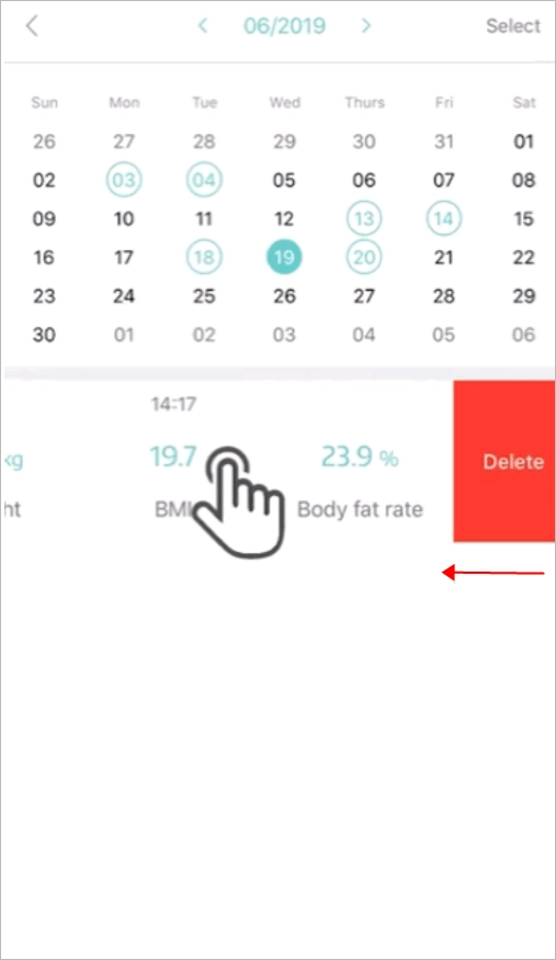 3、若要删除记录,向左滑动需要删除的那组记录,接着点击【删除】按钮就可以了。
