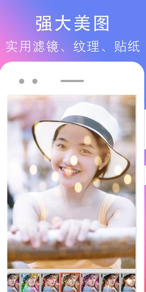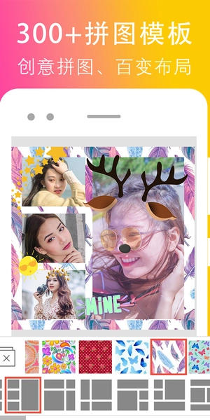 2、300+拼图模板、实用滤镜、纹理、美图贴纸。