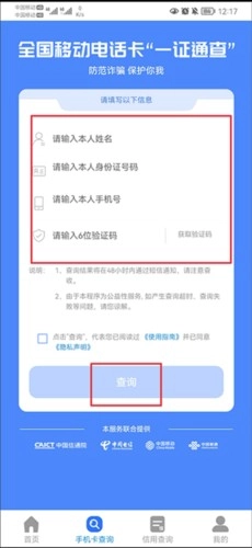 1. 在查询相关信息时,用户可输入个人身份信息,随后通过一键操作即可查询到本人名下的电话卡信息。