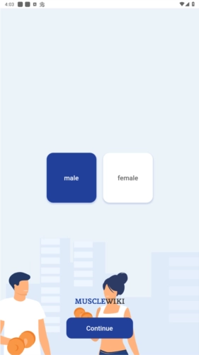 2、进入MuscleWiki后,找到页面下方的Continue按钮并点击。
