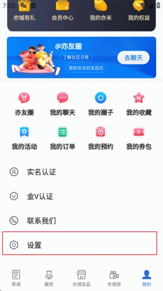 1、打开尚亦城,点击我的-设置;