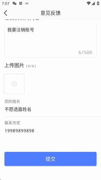 5、意见反馈成功,等待系统审核成功即可完成注销。