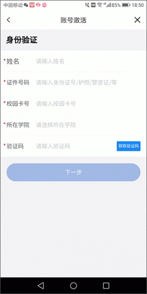2、在打开的账号激活页面里,填写认证信息后点击下一步