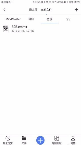 3、当别人通过微信、QQ、钉钉发送思维导图源文件给我,接收完成后,直接打开MindMaster软件,就能在“本地文件”板块里对这些文件进行查看、保存和编辑操作。