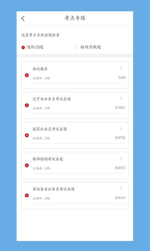 4、同步配备真题与练习题:依据各类考试的考点、考频、难度等维度智能组题,助力学员开展专项训练,并根据个人练习表现生成专属数据报告。