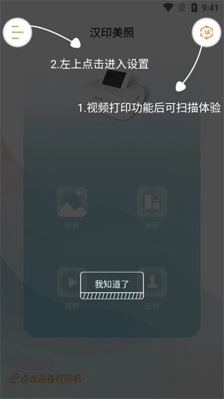 4、点击左上角进入设置界面,右上角的扫描功能可用于体验AR打印。