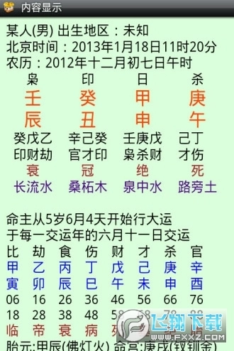 请注意,在行大运之前,是以月柱来当作大运看待的,“流年运程”或者“流年变化”都会依照这一约定来运行。