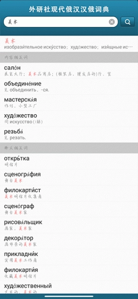 1、进入软件后,可在搜索框中查找单词,支持输入汉语或俄语进行查询。