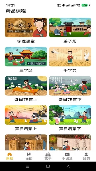课程选择:在首页点击蒙学系列课程,通过标签筛选弟子规礼仪篇、千字文自然篇等主题。进入课程详情页后,能预览前三分钟的内容。
