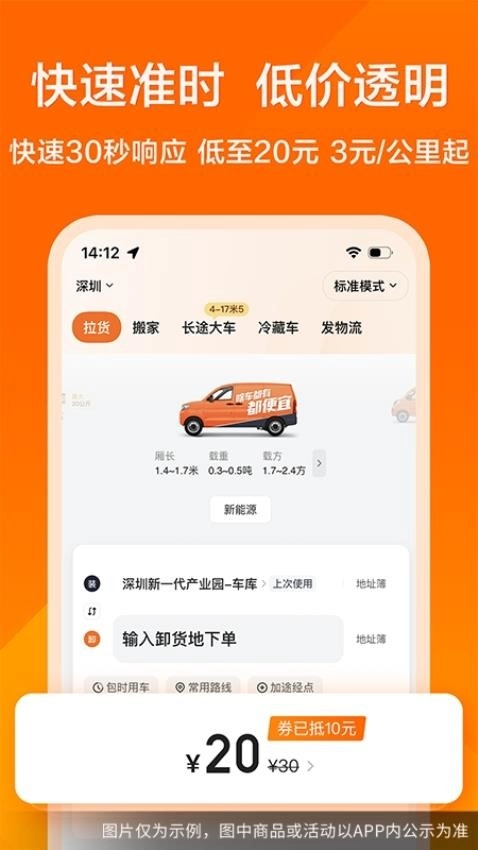 互联网物流服务平台,一站式覆盖您所有拉货需求:同城配送、跨城直达、上门搬家、建材运输、食品配送、家电家具搬运、大件托运、异地仓储配送、海运入仓、面包车货车租赁、宠物出行、包车旅游、展会物资运输、批发货运、毕业季用车、租车购车、优惠加油……