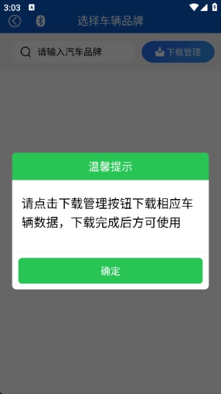 你可以通过输入汽车品牌,或者点击“管理”按钮,来查看专车的诊断数据。