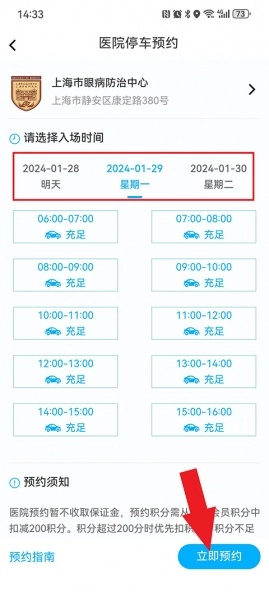 接下来用户要选好自己预约的日期和时间段,选好后点击右下角的立即预约按钮就可以了。