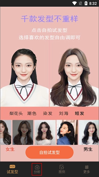 1、打开发型多多的首页上点击“分析”;