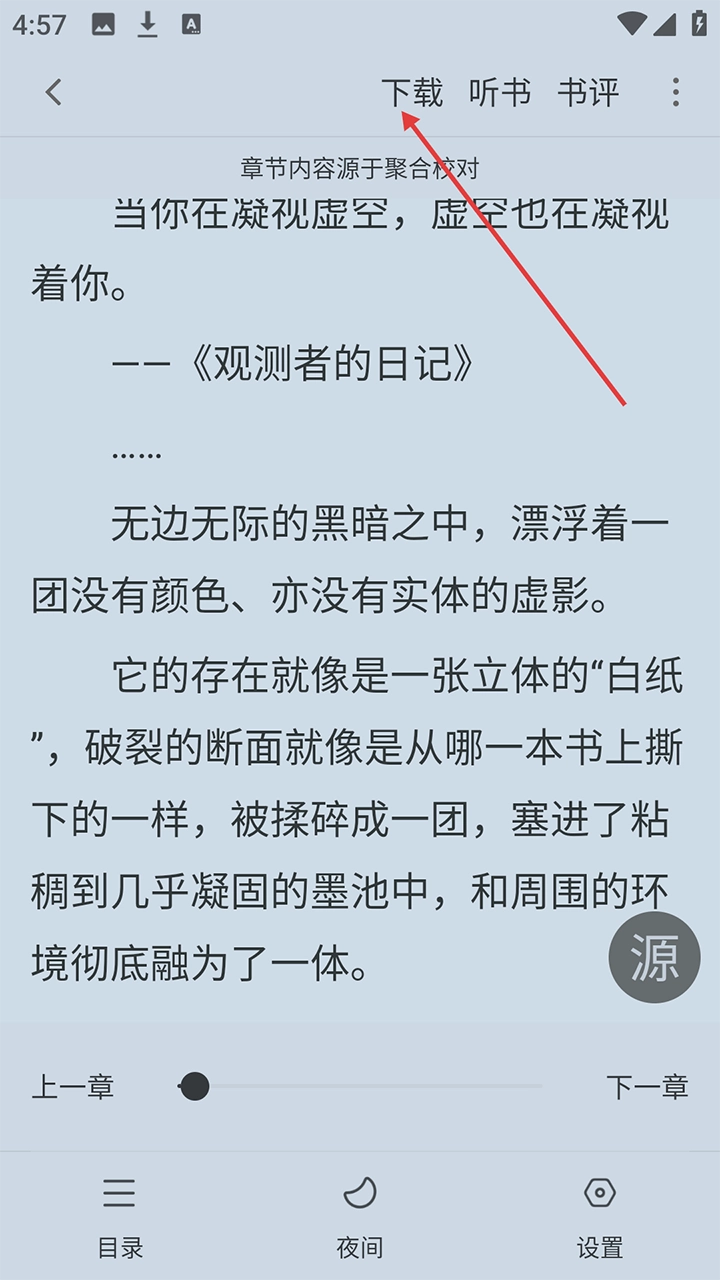 进入阅读界面后,点击右下角的“源”。
