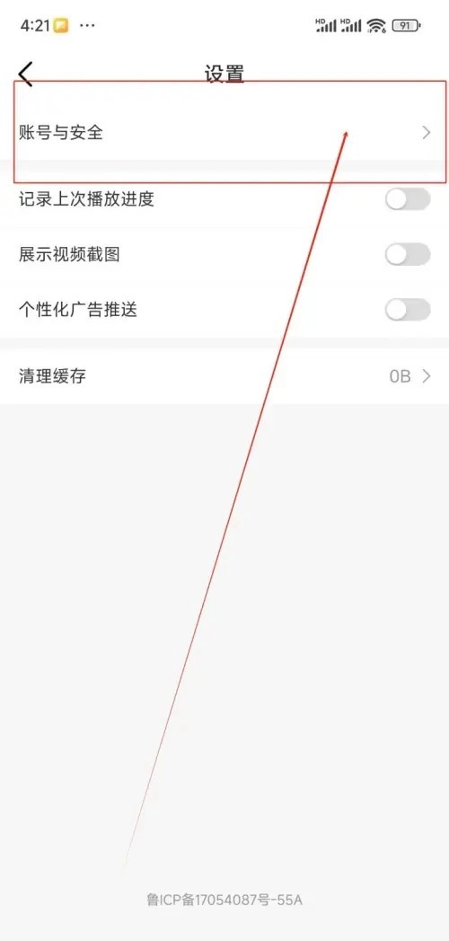 3.在设置界面中点击账号与安全的选项