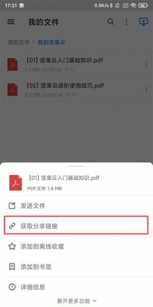 2、点击【获取分享链接】;