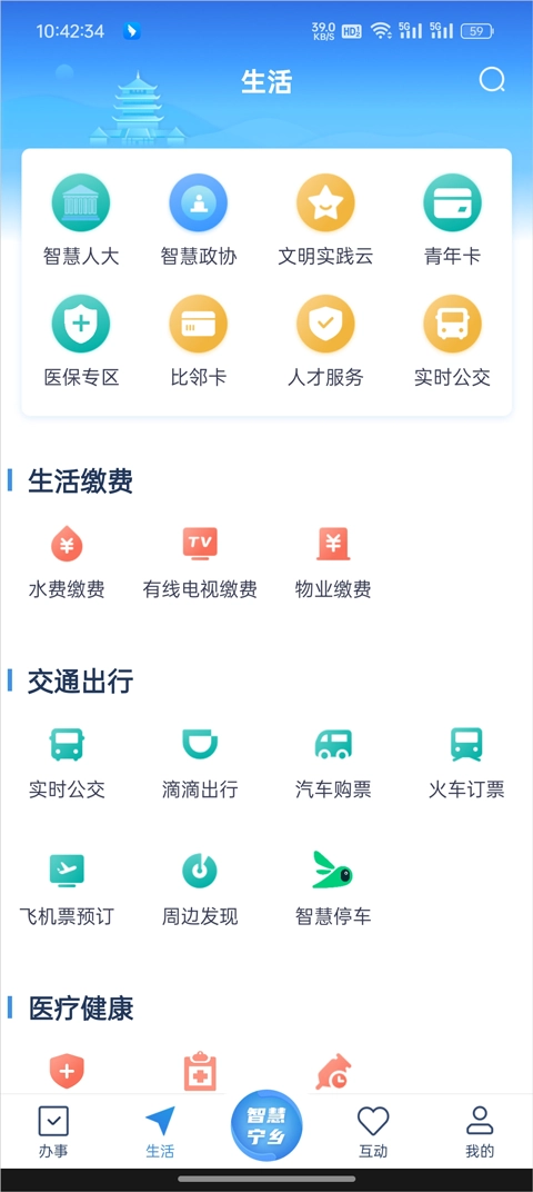 进入智慧宁乡App后点击下方导航的生活