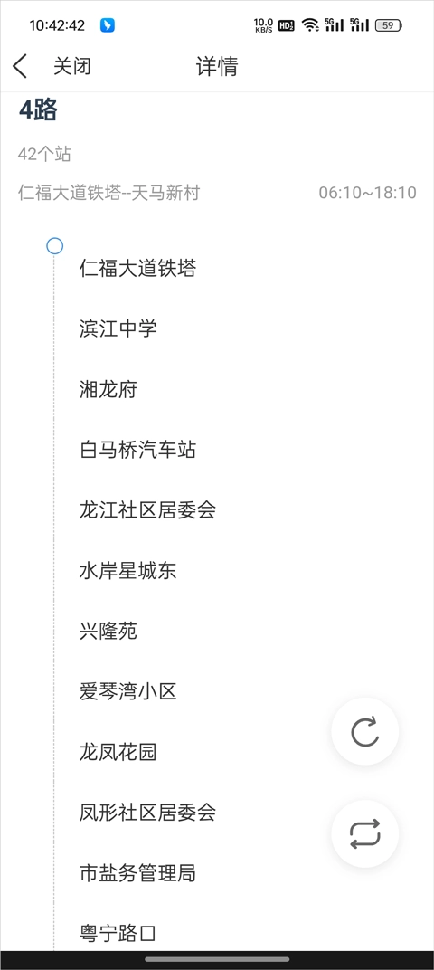 进入公交详情页之后就可以看到车次的站点情况