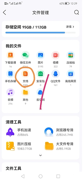 2、在文件分类部分选择解压功能,进入管理页面。