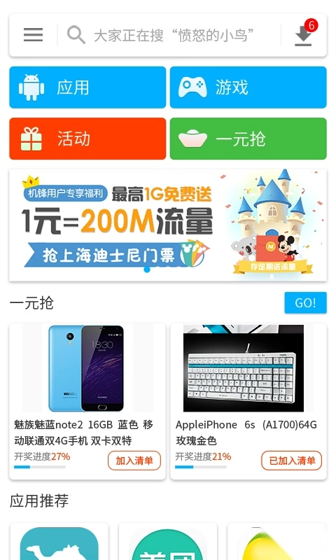 应用:提供大量精心筛选的 Android 应用、主题与多媒体内容等资源,覆盖范围基本涵盖所有领域及类别。