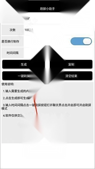 刷屏小助手是一款功能强大的刷屏工具,可帮你生成各类文字与图片,在QQ群、微信群里进行刷屏操作。它能放置在主界面方便随时调用,既不耗时也不会卡顿,能满足每位用户的需求。操作简单无复杂步骤,还支持聊天时使用,更有丰富实用的功能等待你解锁,实现自动刷屏。
