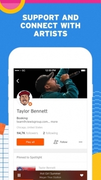 支持地理位置标签功能——你可以聆听播放列表中的歌曲,也能创建专属播放列表并分享给你的粉丝们。