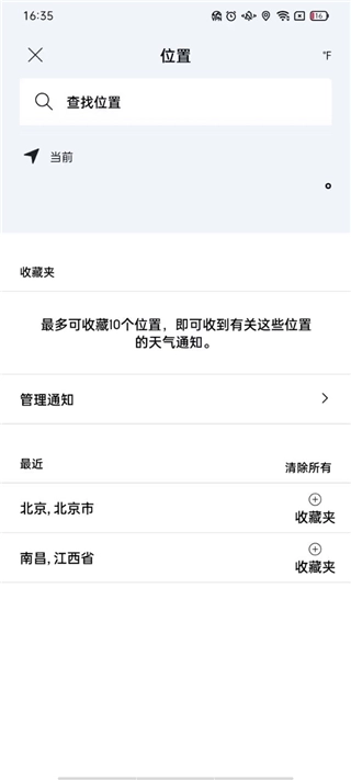 2、在这里我们还能收藏地区,也可以添加10个地区到页面里,便于你更便捷地查看。
