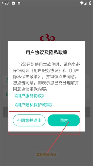 1、软件启动后会弹出【用户协议及隐私政策】窗口,点击窗口中的【同意】按钮,即可进入下一步的登录流程。