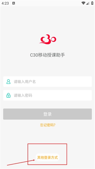 2、进入【C30移动授课助手】的登录页面后,除了用户名-密码输入框外,还能点击【其他登录方式】按钮,切换到多种登录选项的界面。
