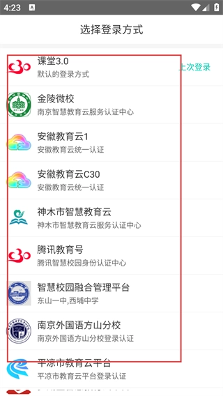 3、在【选择登录方式】界面里,设有【课堂3.0】【金陵微校】等多种认证途径,大家可以挑选合适的方式来完成登录步骤。