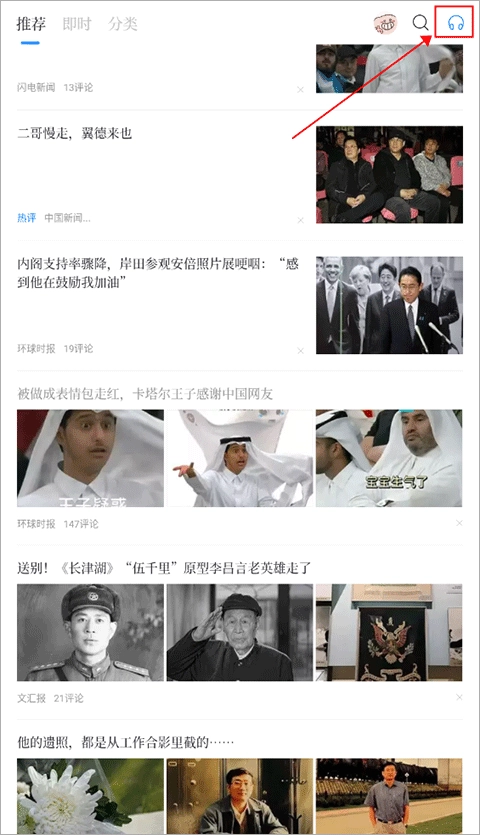 1、进入百度新闻后,在页面右上角能看到一个耳机形状的图标,点击该图标就能使用语音包功能。