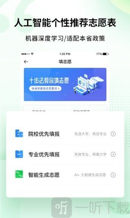 1. 该软件是针对高考招生的特点开发的志愿填报与咨询平台。
