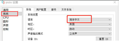 2、点击左侧的“系统”选项,将右侧的语言设置更改为“简体中文”