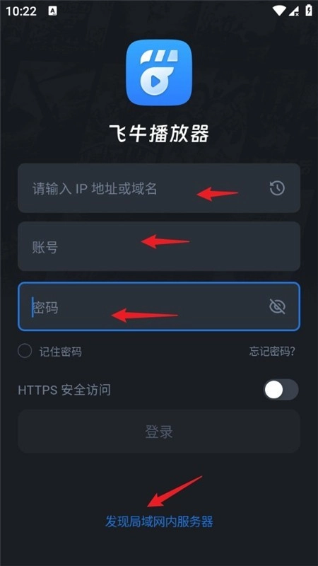 2、打开飞牛播放器,输入IP地址或域名,再输入个人账号与密码,点击登录按钮就能完成登录操作。
