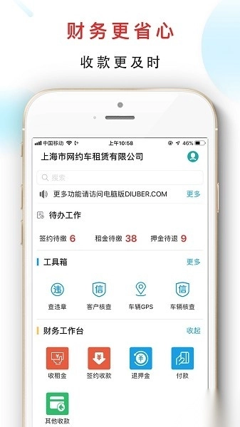 1. 提高团队协作效率,为车管、财务、销售、驾管及修理厂等各类角色配备专属工作台,实现车辆、客户、财务与销售信息的集中化管理;