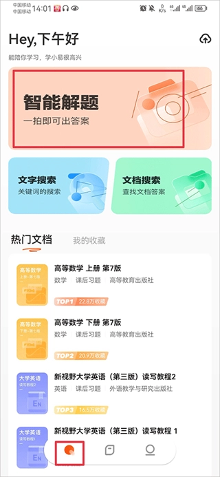 1、在本站点击进入后,于搜索界面中选择智能解题功能。