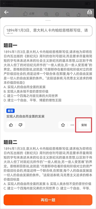 4、等搜索结果显示出来后,点击“复制”按钮就能把答案复制下来了。