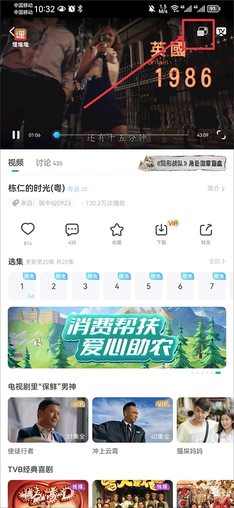 2、进入播放界面后,轻触屏幕调出菜单,接着点击右上角的小窗口图标