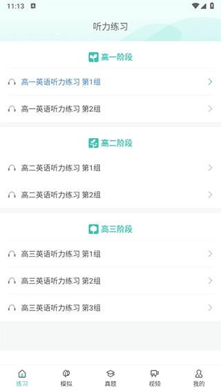 1、高考英语听力板块为用户提供了听力训练资源,用户能够在线完成听力题目的练习。