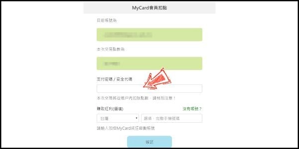 5、登录MyCard会员账户,输入支付密码并根据提示填写(选填)信息,点击确认按钮即可完成交易。
