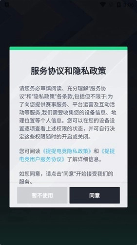 1、提提电竞,进入之后先同意下用户协议。