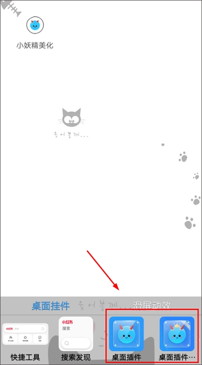 4、接着回到桌面,长按桌面直到弹出插件选项,找到小妖精美化插件。