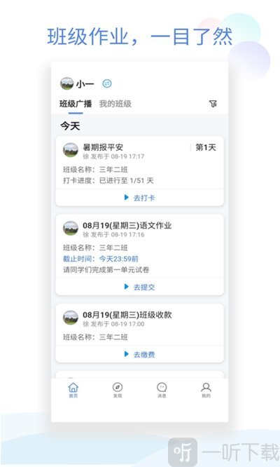 3.发布的作业或通知可以计算每个学生的完成情况。