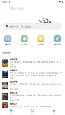 极简小说是面向小说爱好者的专属阅读平台,这里汇集了全网热门小说资源,分类清晰合理,让读者能轻松找到自己喜欢的作品。平台配备强大的搜索功能,读者只需输入关键词,就能快速找到目标小说,满足个性化阅读需求。此外,所有小说都支持本地缓存,方便读者随时随地阅读。