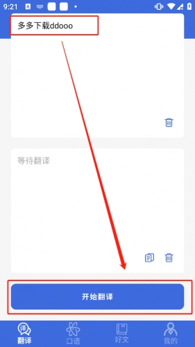 2、确定好翻译设置后再文本栏中输入需要翻译的内容,点击最下放开始翻译即可。